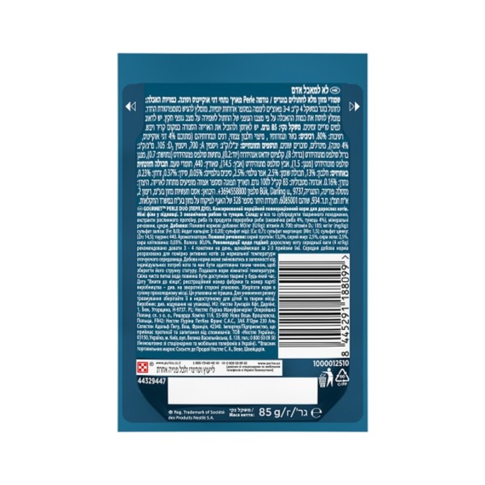 Вологий корм для кішок Purina Gourmet Perle з океанічною рибою та тунцем в ніжній підливі, об’ємом 85 г, — це справжній делікатес, створений для перетворення кожного прийому їжі вашого кота у незабутню подію. Завдяки інгредієнтам вищої якості, корм швидко засвоюється, забезпечуючи вашого вихованця необхідними вітамінами і мікроелементами, такими як вітамін A, D3, залізо, цинк, марганець та мідь.