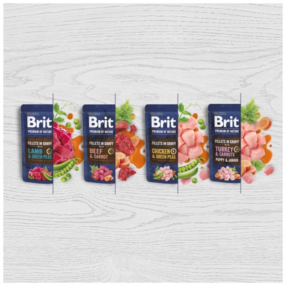 Brit Premium Fillets in Gravy Lamb & Green Peas – це преміальний вологий корм для собак. Він містить 85% філе відбірного м'яса та найкорисніші овочі, які є важливою частиною збалансованої дієти для здоров’я та бадьорості улюбленців. Також цей корм стане додатковим джерелом вологи для песиків.