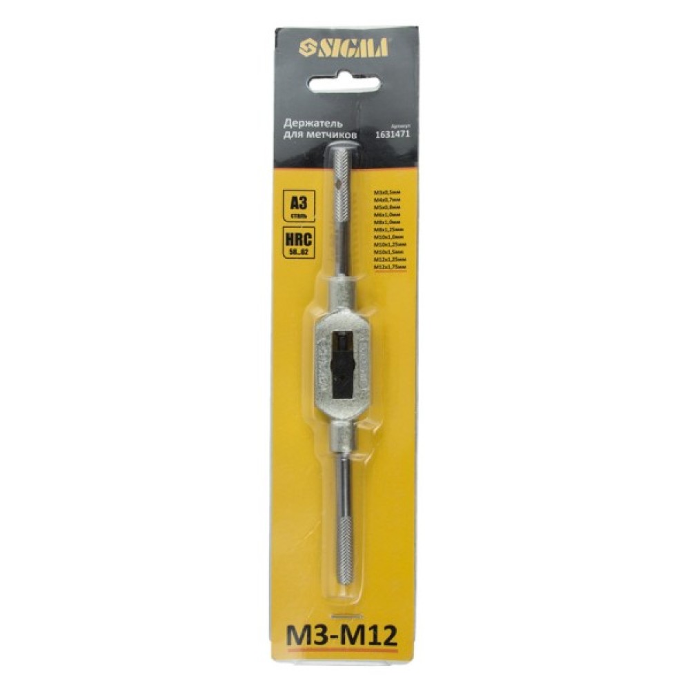Тримач для мітчиків М3-М12 SIGMA (1631471) призначений для фіксації резьбонарезного інструменту і подальшого нарізування різьблення.