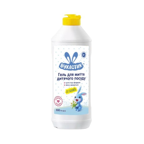 Засіб для ручного миття посуду Вухастик спеціально створений для догляду за дитячим посудом та аксесуарами. Він підходить для миття виробів із силікону, пластику, латексу та інших матеріалів, що робить його універсальним вибором для батьків.