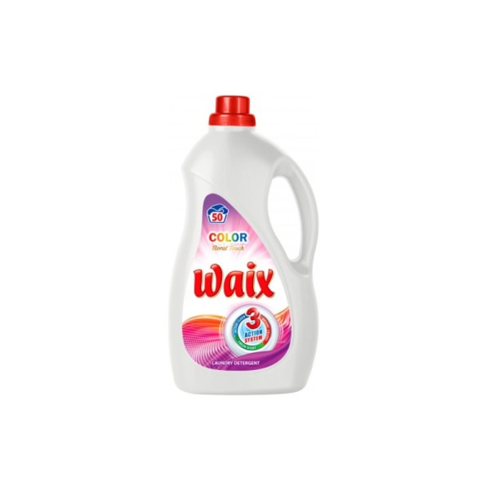 Гель для прання Waix Floral Touch для кольорових тканин - ідеальний вибір для тих, хто шукає ефективність та дбайливий догляд за улюбленими речами. Цей засіб об’єднує в собі потужну формулу 3 ACTION SYSTEM, яка забезпечує комплексний підхід до прання: активну чистку, збереження яскравості кольорів та свіжий аромат, що залишається з вами протягом тривалого часу.