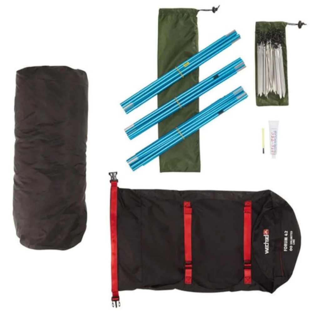 Неодноразово довівши свою функціональність, надійність і універсальність, тепер Wechsel Forum 4 2 представлений в топовій лінійці наметів Unlimited Line, має водонепроникність 10 000 мм в. ст., найлегший і найнадійніший алюмінієвий каркас DAC Featherlite NSL Green, найбільш міцні матеріали тенту і підлоги і герметичний компресійний чохол. Ця модель не має собі рівних ні по конструкції, ні по функціоналу, залишаючись найстійкішим двомісним наметом напівгеодезичної конструкції. При цьому збільшене спальне місце і об'ємні тамбури роблять дану модель повноцінної наметом з точки зору місткості.