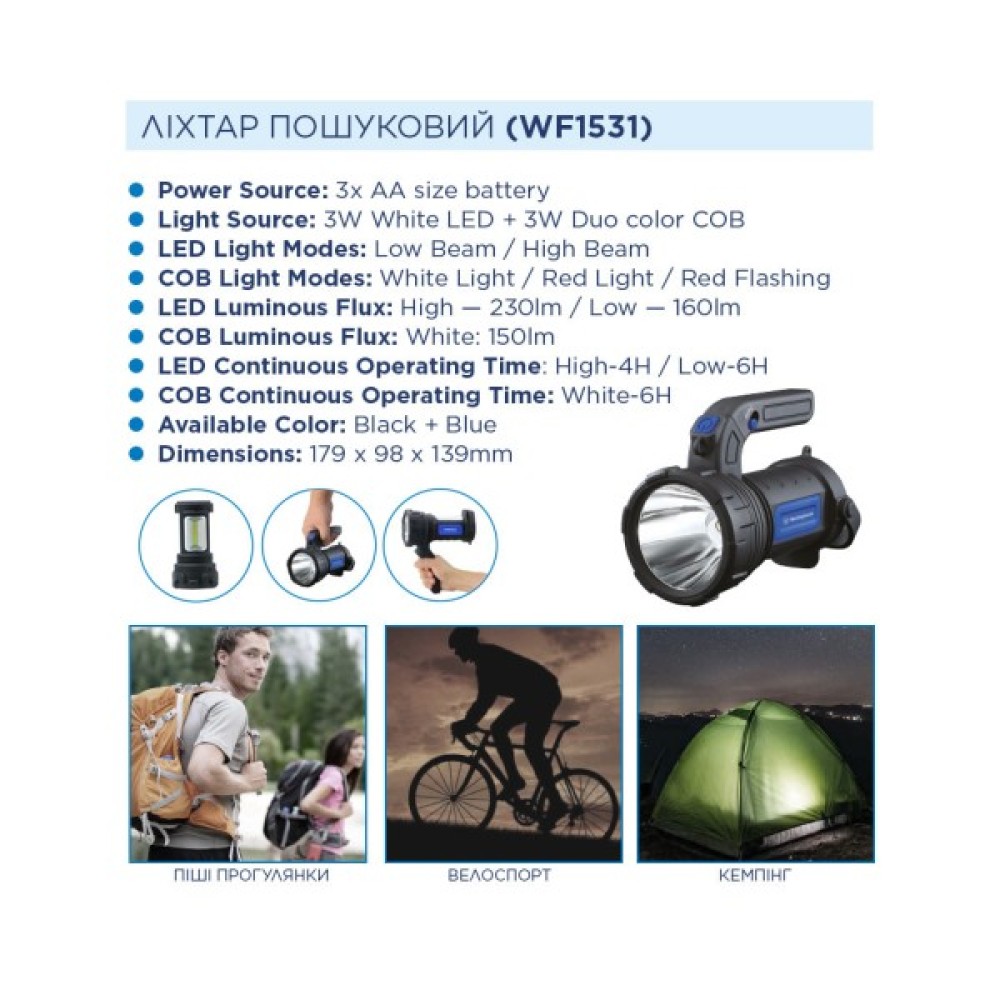 3W WF1531 + 3xAA R6 в комплекті