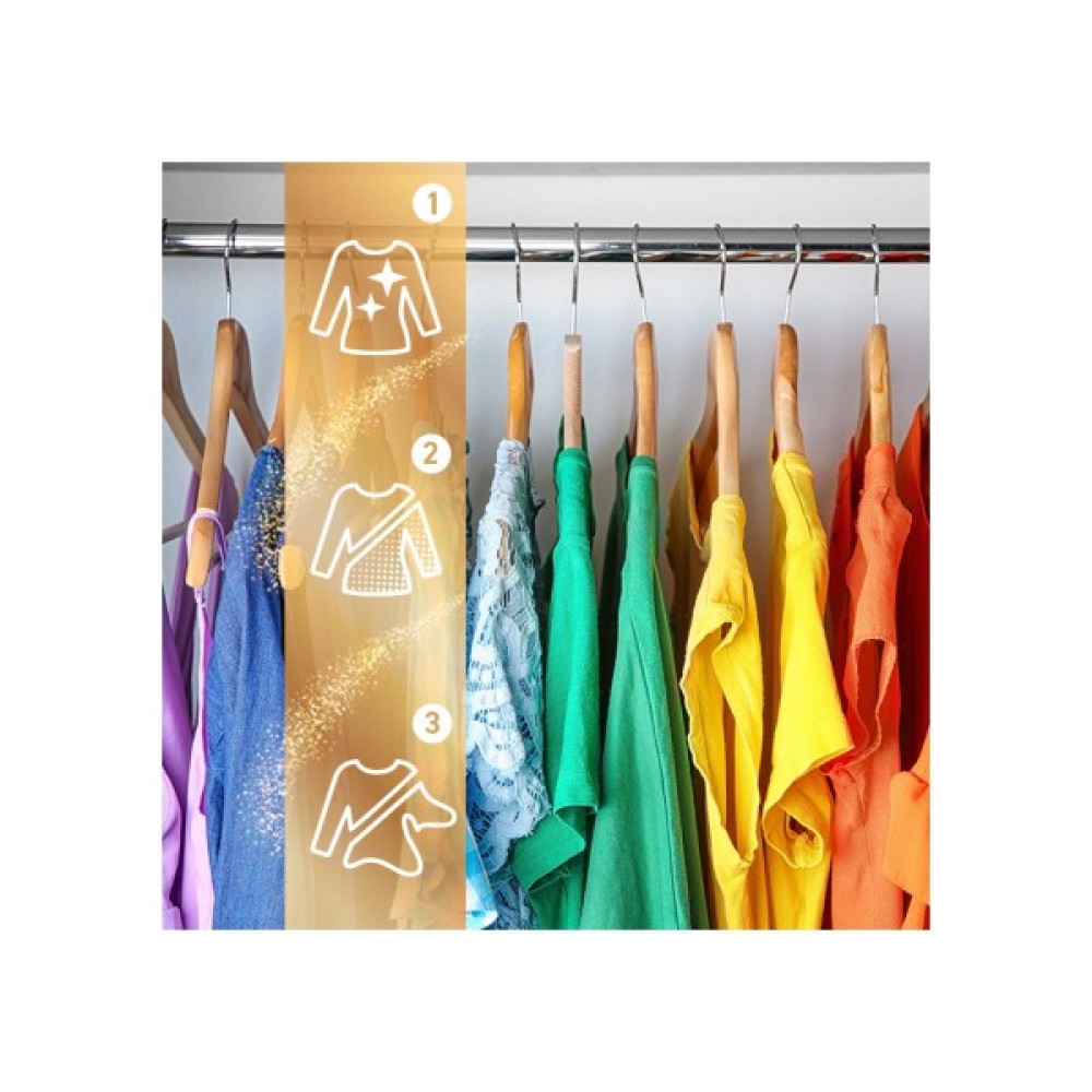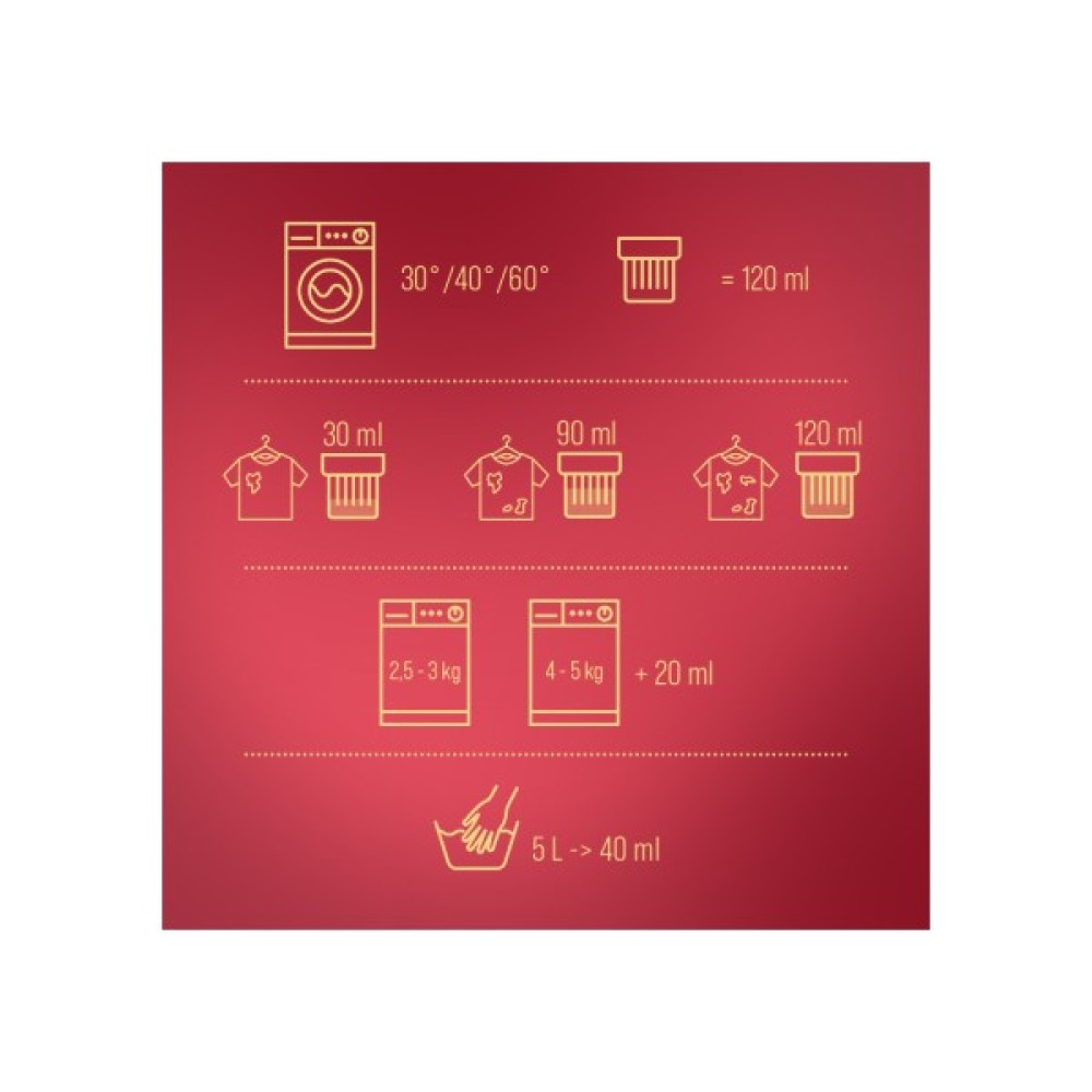 Керівний компонент засобу — кератин, відомий своїми властивостями у догляді за волоссям, тепер доступний і для вашого одягу. Цей компонент не лише розгладжує волокна, але й створює захисний бар'єр, що продовжує яскравість кольорів, запобігаючи їх вигорянню навіть після численних прань.