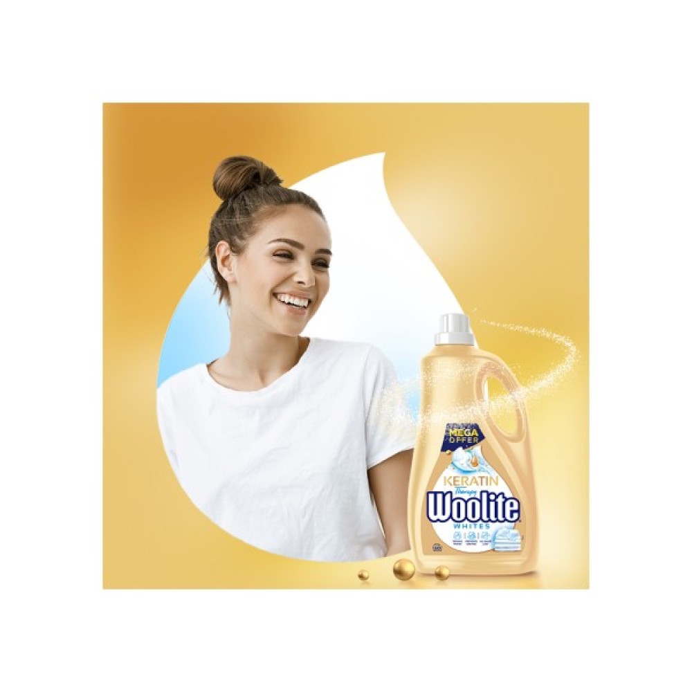 Обираючи Woolite Keratin Therapy, ви робите вибір на користь досконалості: ваш одяг не лише виглядатиме чудово, але й залишатиметься захищеним і доглянутим після кожного прання. перетворіть догляд за білизною на просту і приємну процедуру завдяки цьому унікальному гелю.