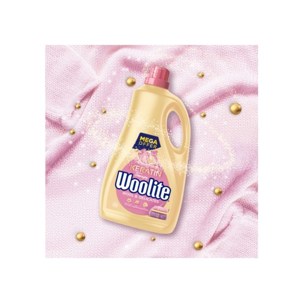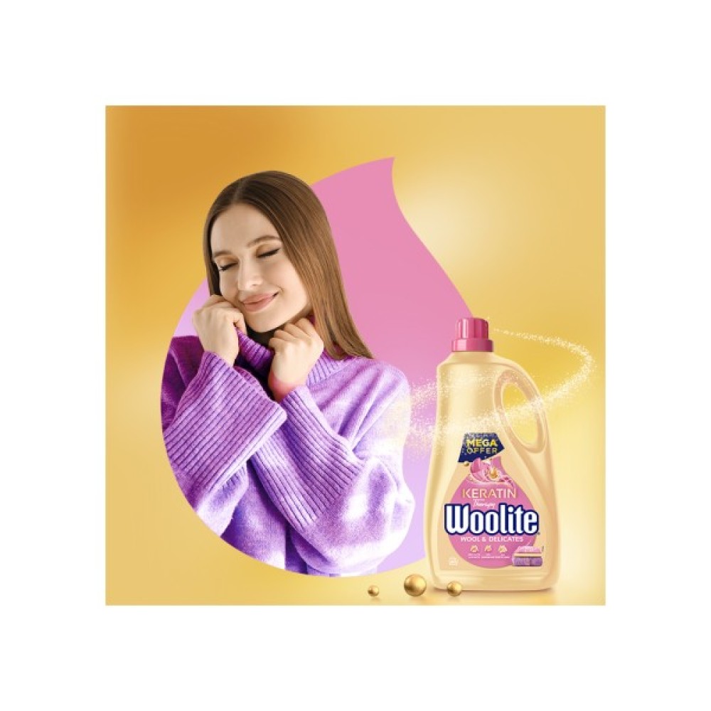 Гель для прання Woolite з кератином спеціально розроблений для догляду за вовною та делікатними тканинами, гарантуючи бездоганну чистоту і збереження якості вашого одягу. Він робить процес прання не тільки ефективним, а й безпечним, підкреслюючи ваше прагнення до турботи про речі та довкілля.