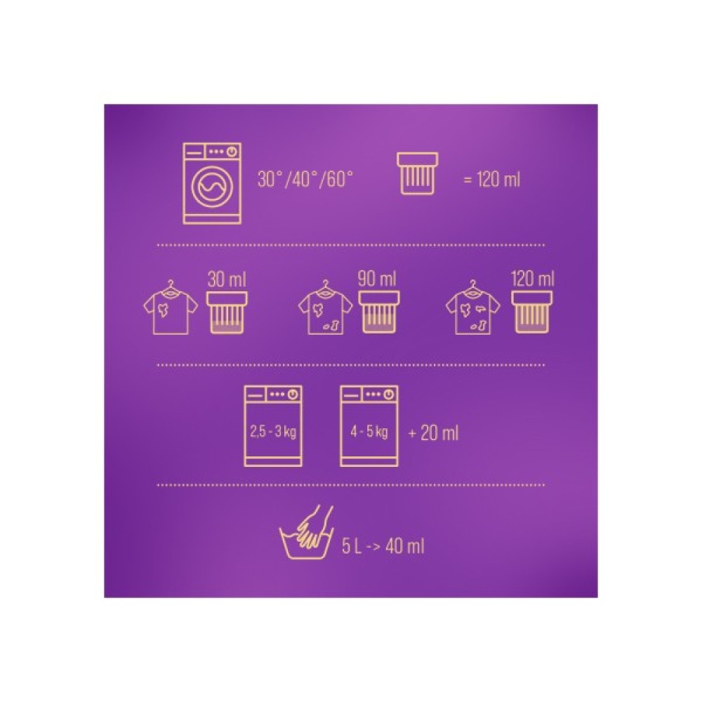 Безфосфатний склад Woolite підкреслює вашу екологічну свідомість, оскільки піклується про здоров'я сім'ї та планети. Цей гель підходить для всіх типів кольорової білизни, прикрашаючи її свіжістю й природним ароматом. Його універсальність дозволяє легко видалити навіть найскладніші плями, надаючи вашим речам чистоту і оновленість.