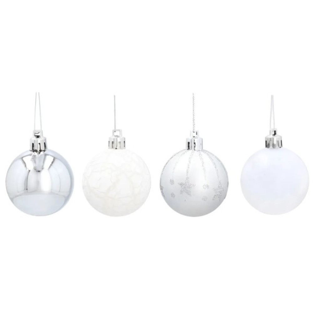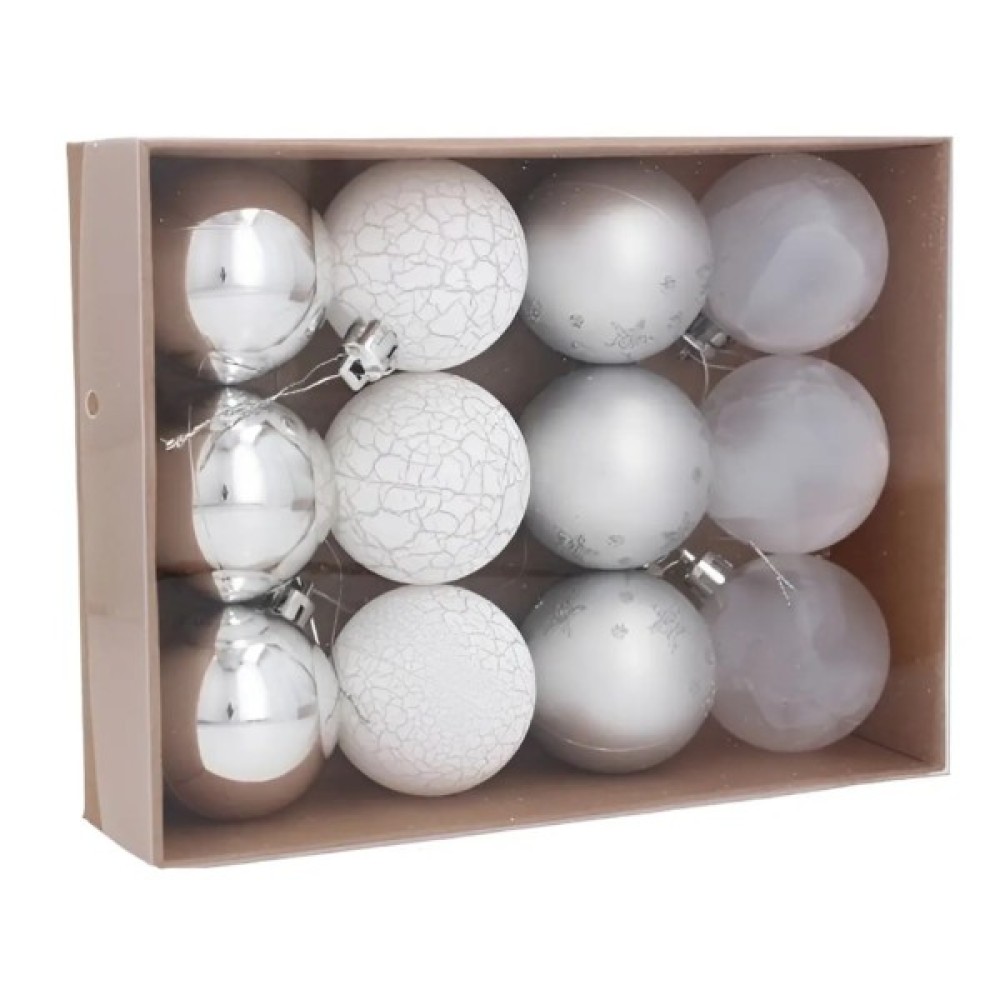 Сріблясті Chomik діаметром 5 см — це стильне рішення для створення елегантного новорічного декору. У наборі 12 пластикових кульок, серед яких глянцеві, матові, з візерунком і з текстурною поверхнею (по 3 шт. кожного виду). Така різноманітність дозволяє формувати багатошаровий і візуально насичений декор, який гармонійно виглядатиме як на пишній ялинці, так і в тематичних композиціях. Завдяки міцному матеріалу кульки не розбиваються, що робить їх практичними і безпечними для використання у приміщеннях з дітьми або домашніми улюбленцями. У комплекті передбачена срібляста нитка для зручного кріплення, а компактне пакування дозволяє зручно зберігати прикраси після свят.