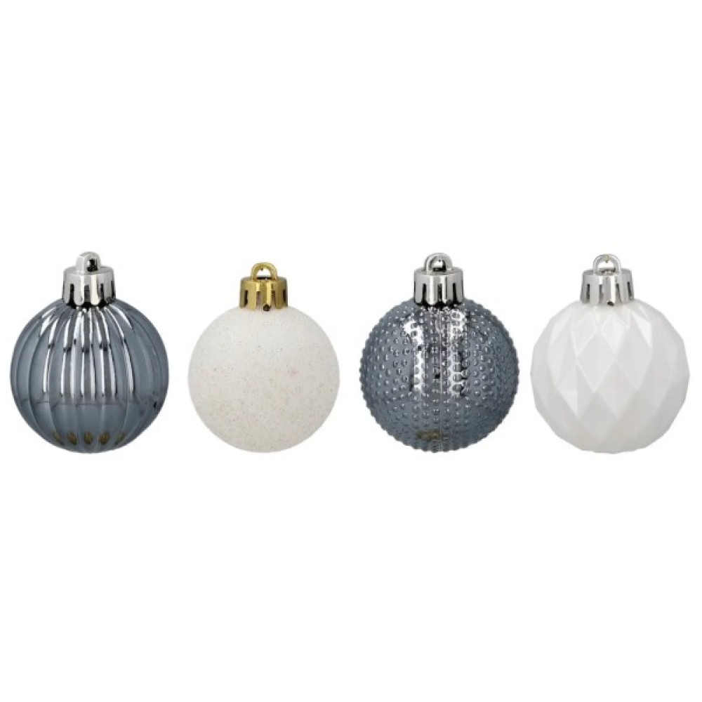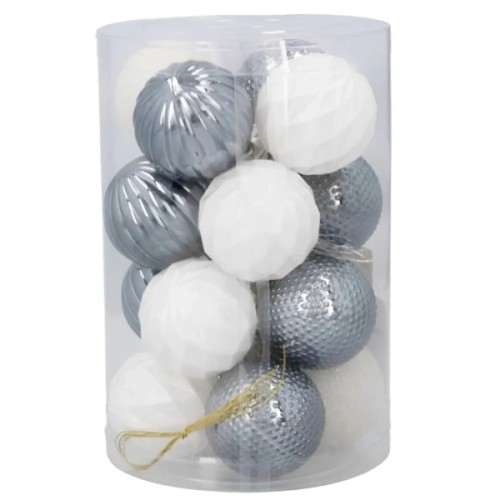 Ялинкова іграшка Chomik пластикові кульки 16 шт, 4 см, сріблясті і біли (5900779877351_3)