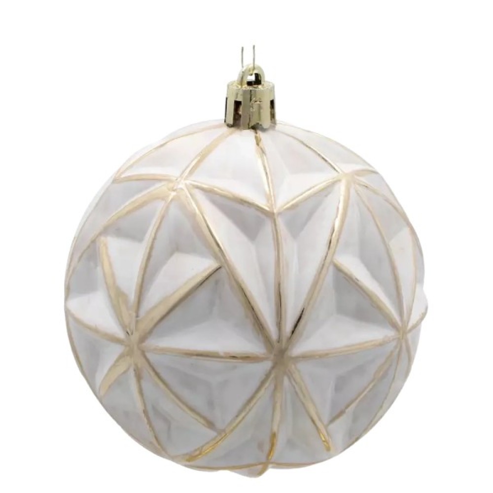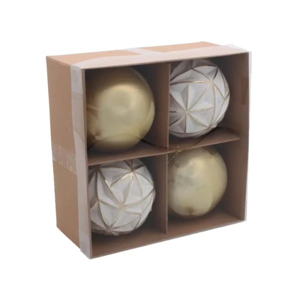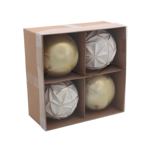 Ялинкова іграшка Chomik пластикові кульки 4 шт, 8 см, біло-золотисті (5900779897243)