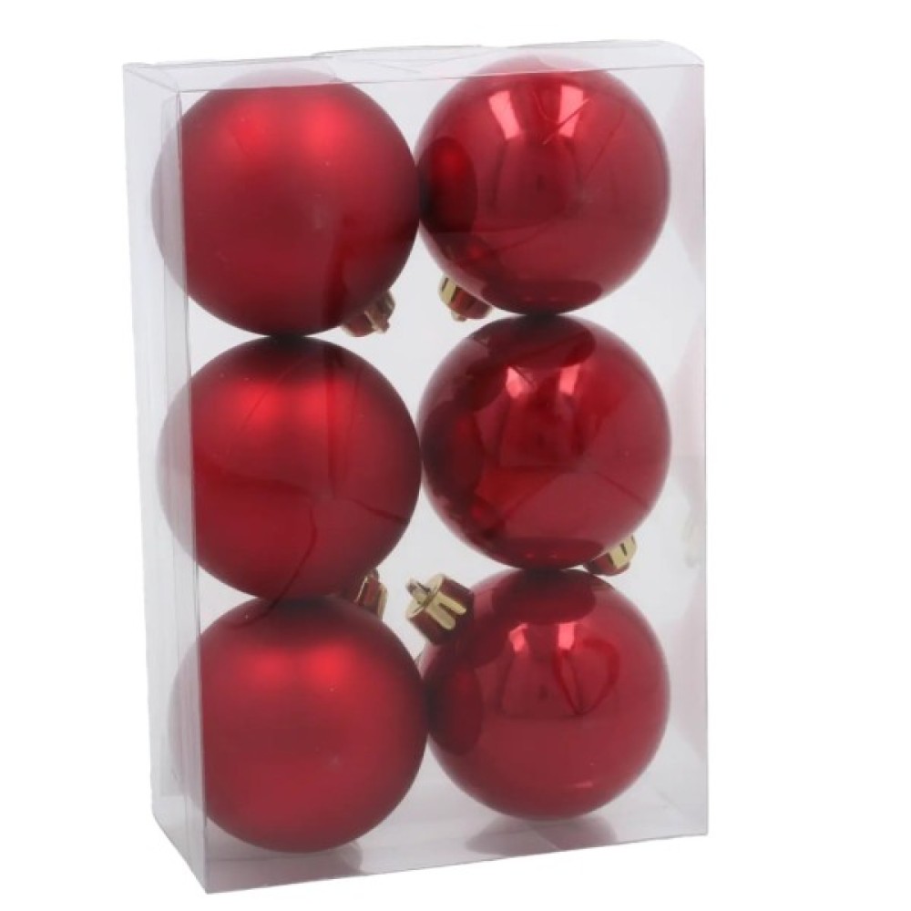 Ялинкова іграшка Chomik пластикові кульки 6 шт, 6 см, червоні (5900779893863_3)