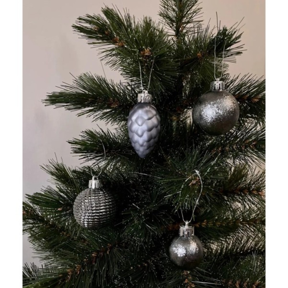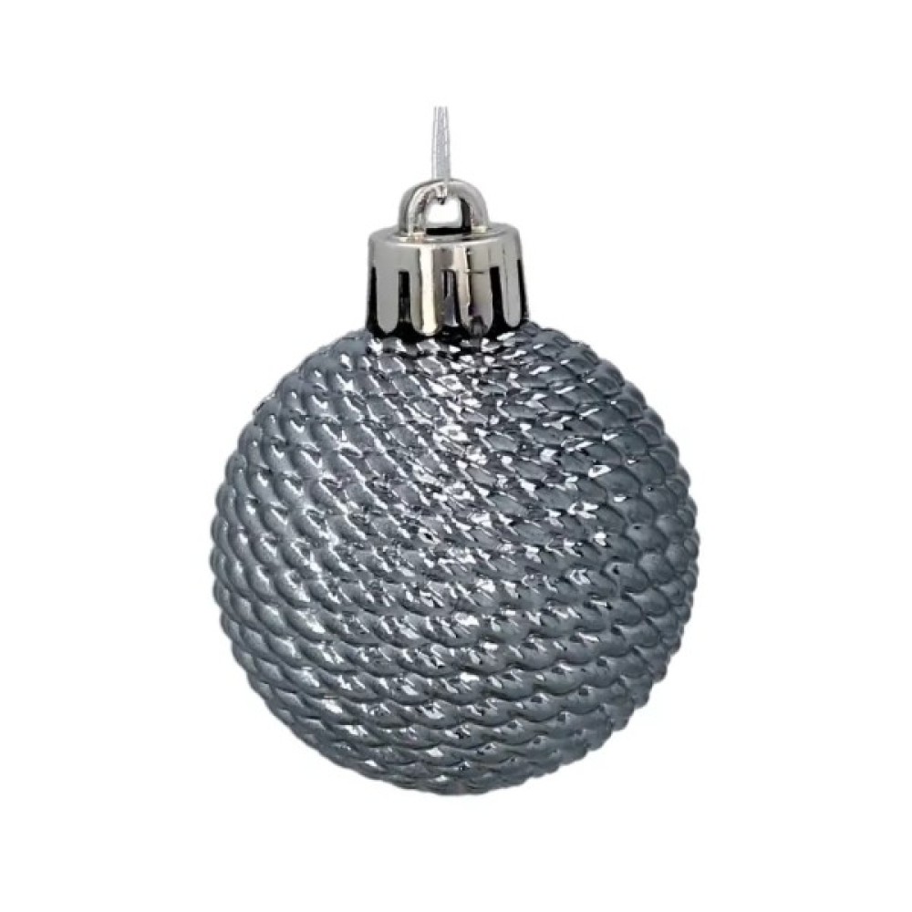 Особливістю набору є різноманіття покриттів та текстур (глянцеві рельєфні, ефект інею, матові) пластикових кульок, представлених у привабливому сіро-синьому відтінку*, що дозволяє вишукано оздобити новорічне дерево у повноцінну святкову композицію. Структурна рельєфна поверхня додає кулькам оригінальності та шарму. Комплект особливо вдало виглядає на фоні зеленої хвої, а також впишеться у будь-який інтер'єр — залишається лише вдягнути іграшки на вашу ялиночку!