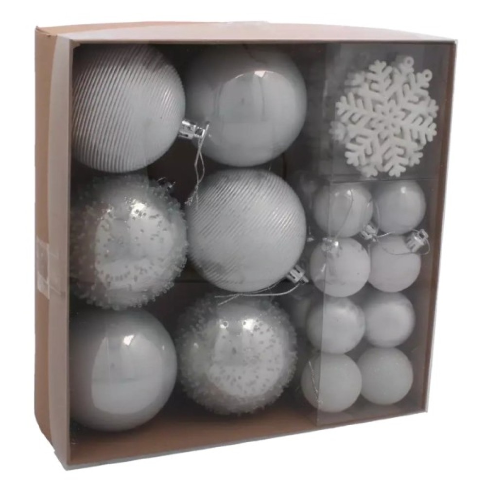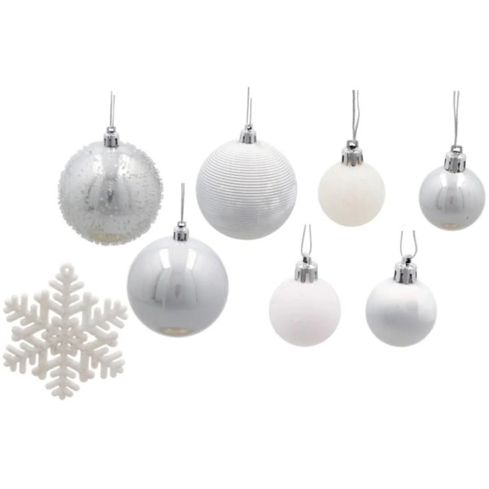 Ялинкова іграшка Chomik пластикові Кульки, сніжинки 30 шт, срібні (5900779895324_1)