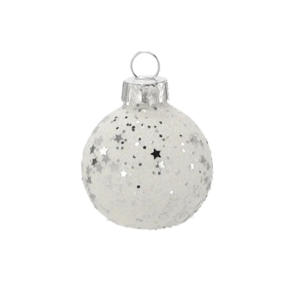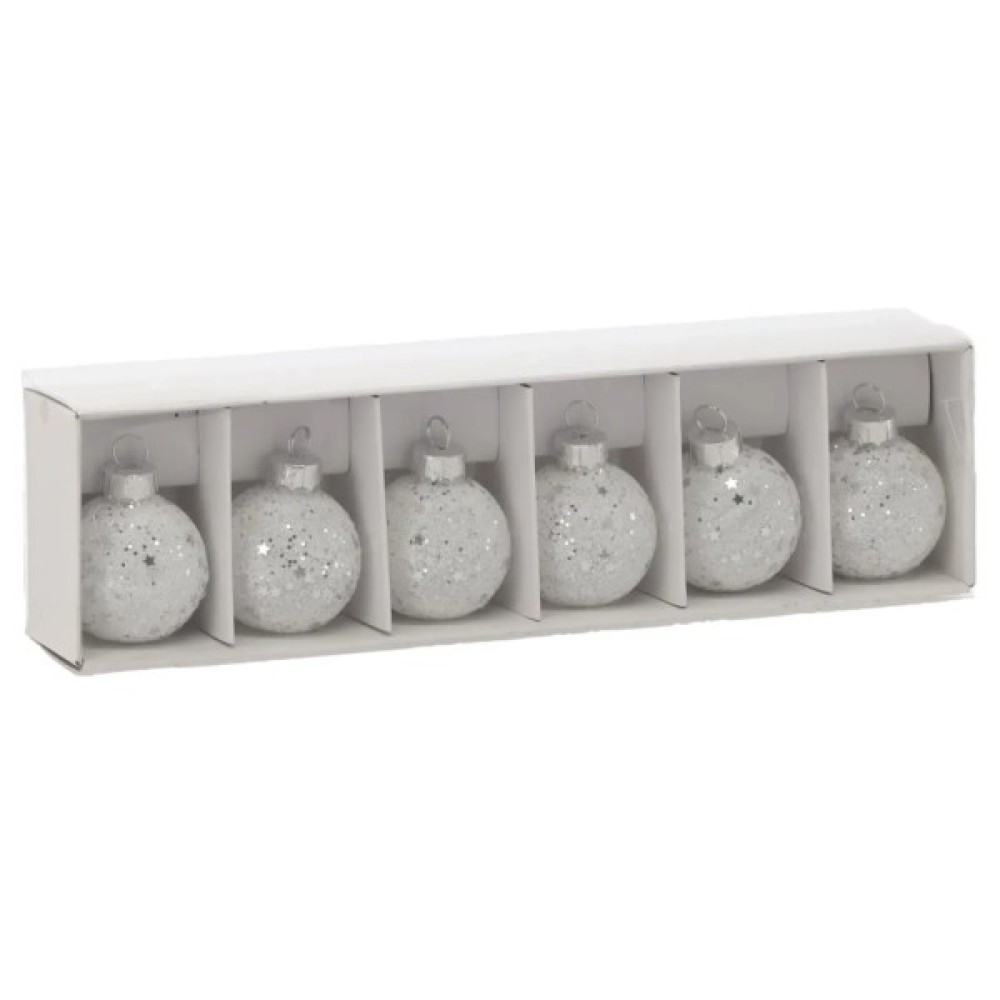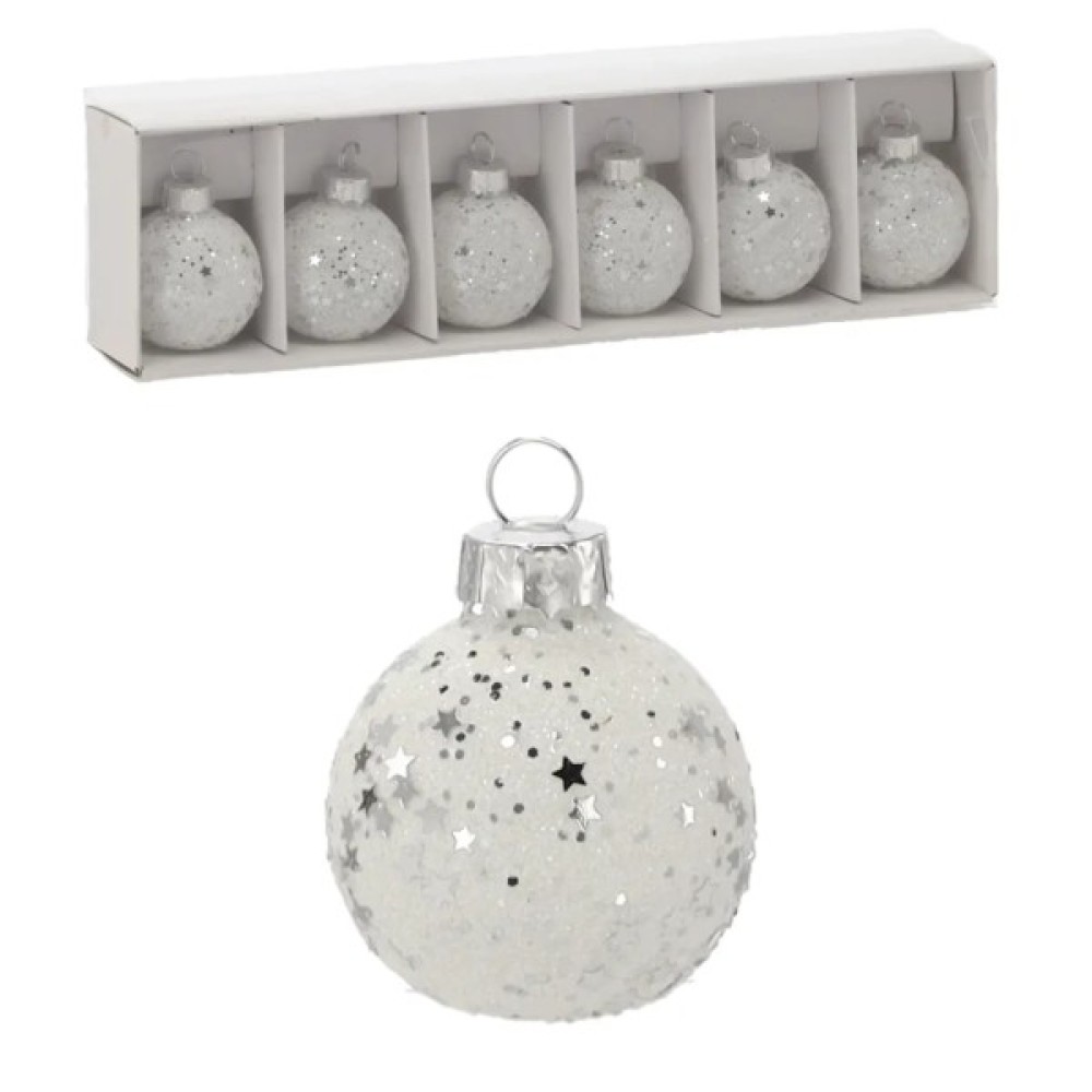 скляні кульки 6 шт, 4 см, білі з паєтками