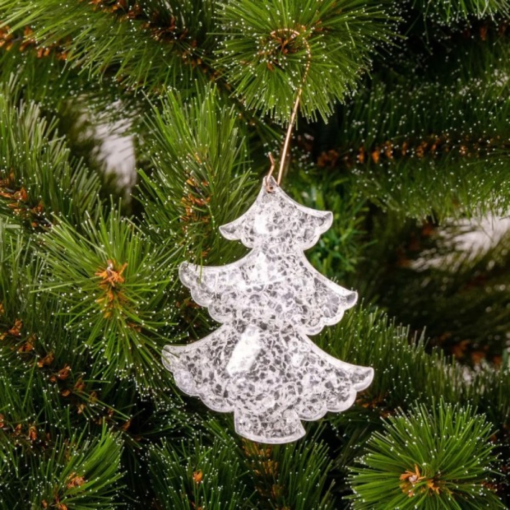 Особливості- Скляна прозоро-біла поверхня прикраси створює враження натурального крижаного покриття, що особливо ефектно виглядає при штучному або природному освітленні.