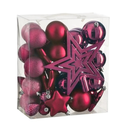 Ялинкова, іграшка, House, Of, Seasons, Кульки, і, прикраси, Пластик, 40, шт, D8, см, D7, см, D6, см, Фуксія, 8720967923649