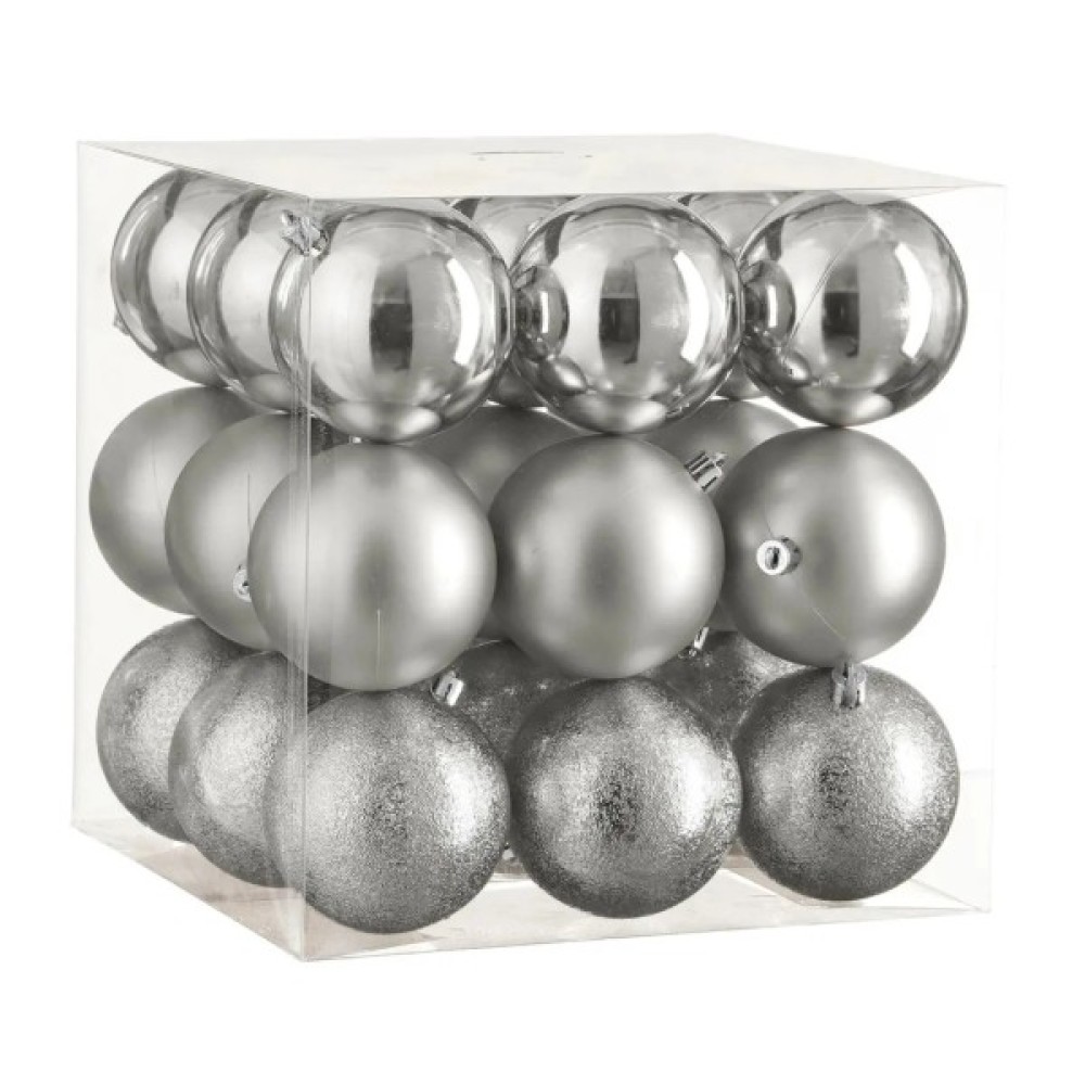 Ялинкові кульки — невіддільний новорічний елемент декору, без якого складно уявити різдвяну атмосферу. У нашому комплекті — казкове поєднання кульок великого розміру різних покриттів у приємному сріблястому відтінку*, які особливо вдало виглядають на фоні зеленої хвої, а також впишуться у будь-який інтер'єр. Різноманіття покриттів кульок: