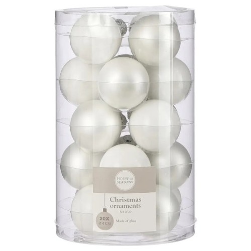 Ялинкові прикраси — невід'ємний новорічний елемент декору, без якого складно уявити різдвяну атмосферу. У нашому комплекті — ніжне поєднання скляних кульок білого кольору невеликого розміру у матовому та глянцевому покритті, які особливо вдало виглядають на фоні зеленої хвої, а також впишуться у будь-який інтер'єр. Залишається лише вдягнути кульки на вашу ялиночку!