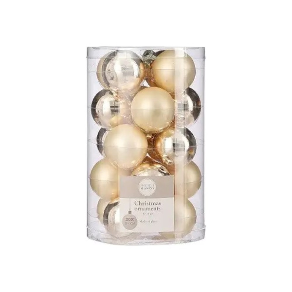 Ялинкова, іграшка, House, Of, Seasons, Скляні, кульки, 20, шт, D4, см, Шампань, 8718861800159