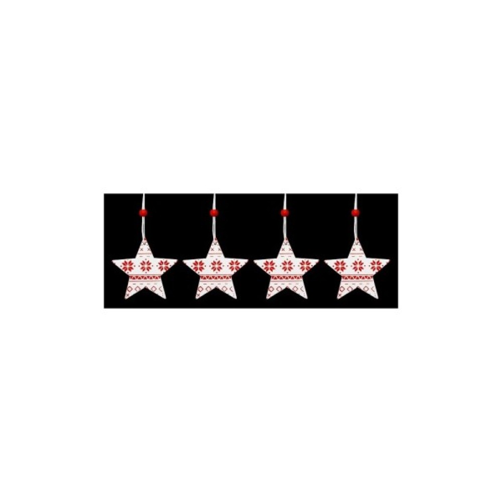 4 шт (6,5 см) Зірка, дерево, білий з червон