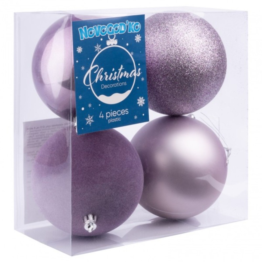 Ялинкова іграшка Novogod`ko 4 шт, 10 см, бузковий, матовий (974789)