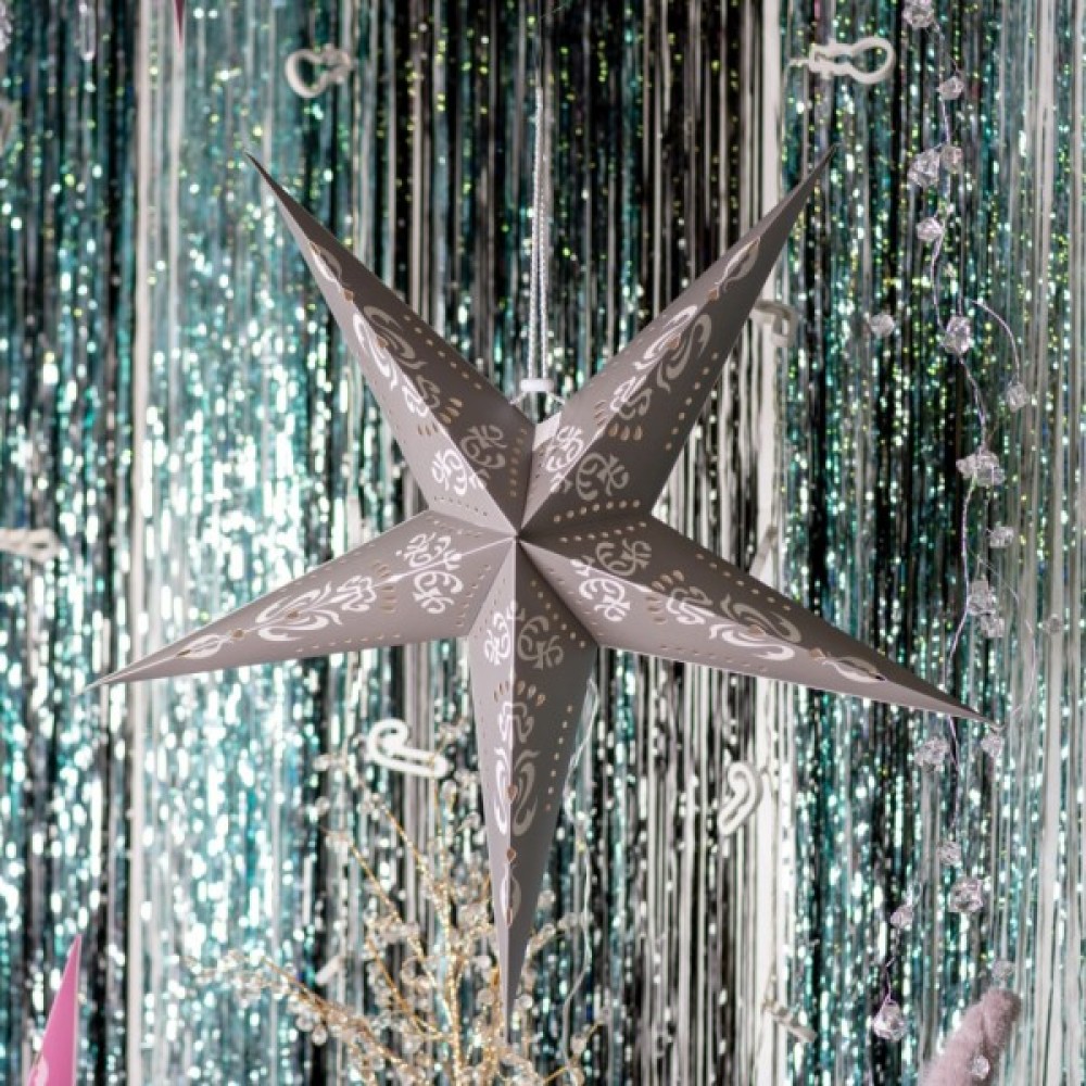 Модель: Зірка паперова 3D, матове срібло, 60 см, LED