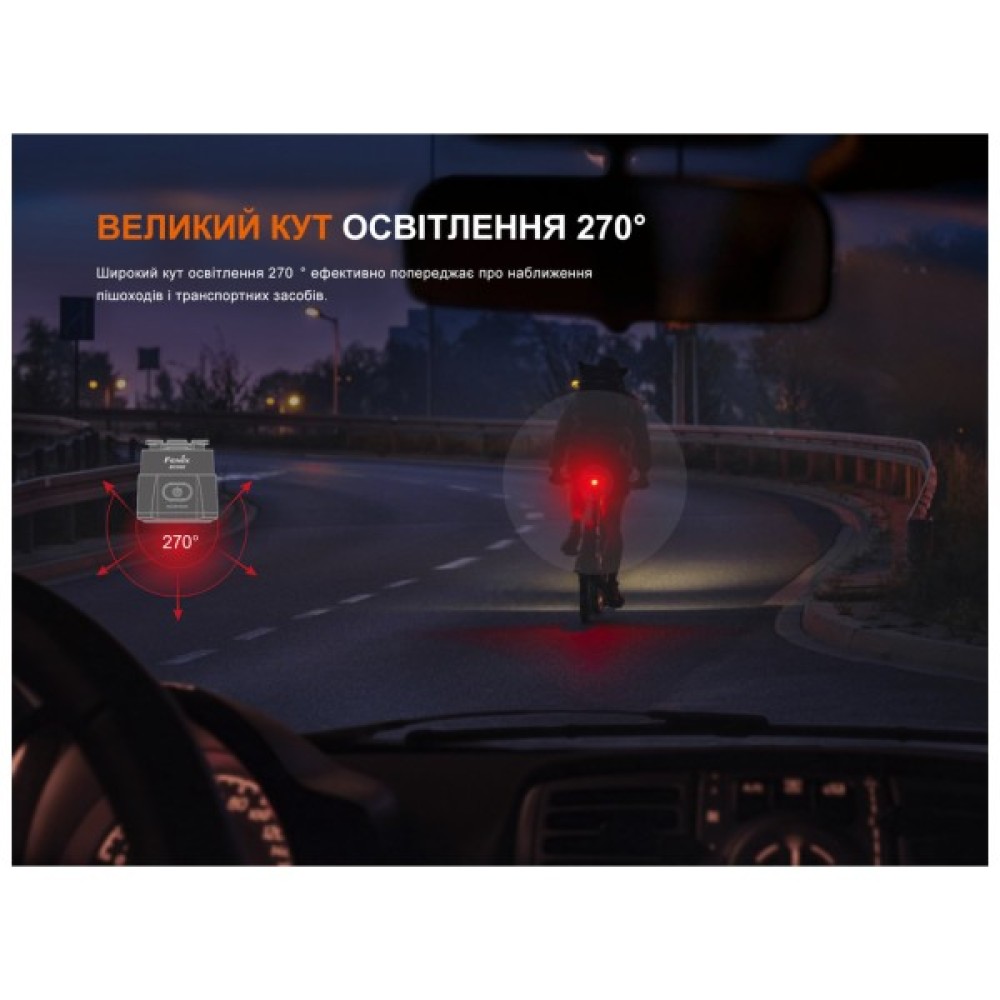 Велофара Fenix BC06R працює у 8 режимах і має функцію розумного гальмування, яка спрацьовує у разі швидкого зниження швидкості їзди, збільшуючи яскравість світла до 90 лм. Ширококутний промінь світла 270°, видимий на відстані 100 м, забезпечує максимальну безпеку. Акумулятор 560 мАгод гарантує до 22 год безперервного світіння на одному заряді. Модель можна кріпити до дуг сідла або підсідельного штиря.