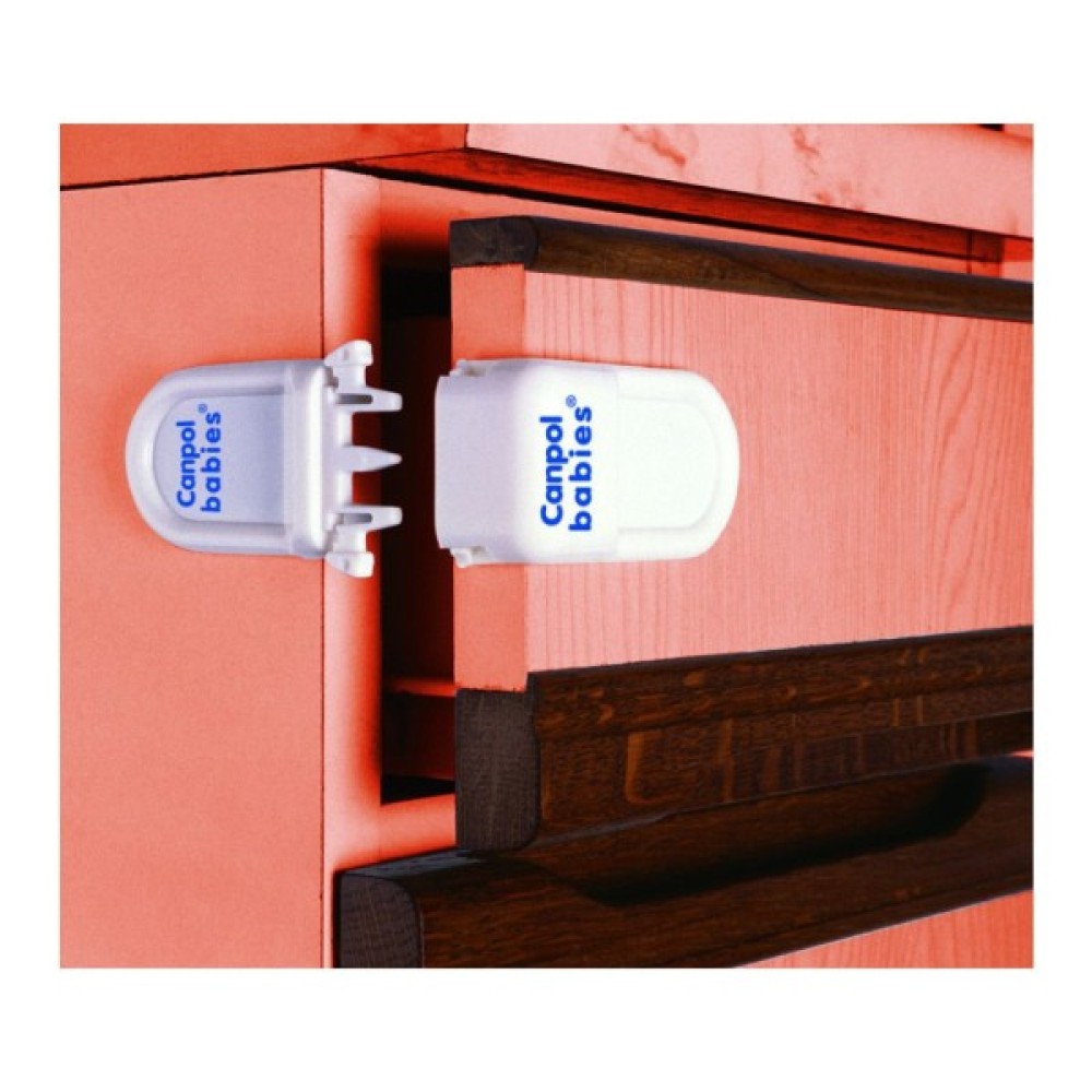 Захист від дітей на ящик (блокада для ящика) підходить до всіх типів висувних ящиків і захищає цікавого малюка. Цей надійний замок для скриньки складається з двох частин. Частина з "зубчиками" слід розміщувати на зовнішній стороні меблів, в той час як інша частина кріпитися до висувного ящика. Щоб відкрити замок, натисніть одночасно на обидві кнопки і висуньте ящик.