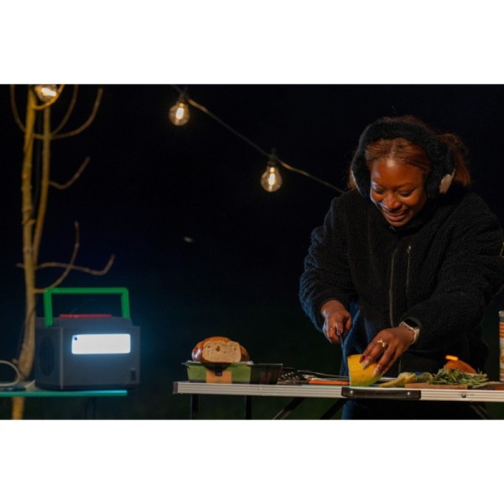 Станція оснащена літій-іонною батареєю, яка забезпечує достатню місткість для заряджання смартфонів, ноутбуків, планшетів чи роботи невеликих пристроїв, як-от вентилятори чи освітлення. Вона підтримує вихідну потужність, достатню для одночасного живлення кількох пристроїв через різноманітні порти, включно з розетками змінного струму з чистою синусоїдою, портами USB і автомобільним роз’ємом. Додатково є функція бездротового заряджання для зручного живлення сумісних пристроїв без кабелів.