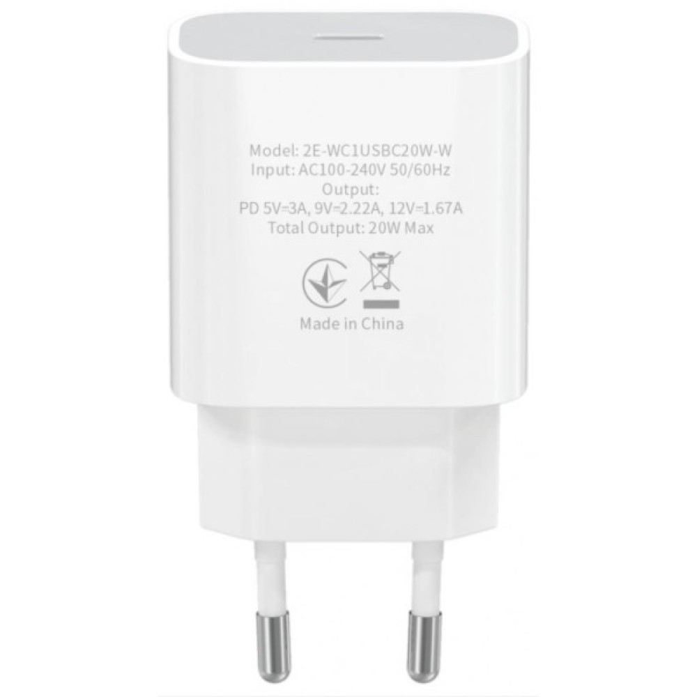 Зарядний пристрій 2E USB-C Wall Charger PD3.0 DC5V/3A, 20W, white (2E-WC1USBC20W-W) пропонує вам новий рівень заряджання мобільних пристроїв завдяки своїй універсальності та високій ефективності. Цей компактний адаптер, що живиться від мережі, створено для швидкого та надійного забезпечення енергією будь-якого пристрою, обладнаного USB Type-C роз'ємом.