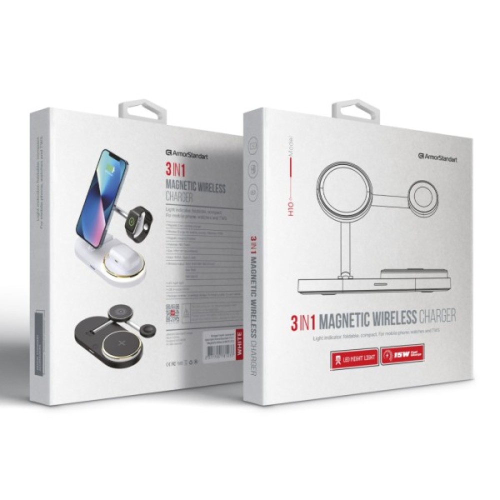 Зарядний, пристрій, Armorstandart, Wireless, Charging, H101, 3, in, 1, Magnetic, White, ARM78102