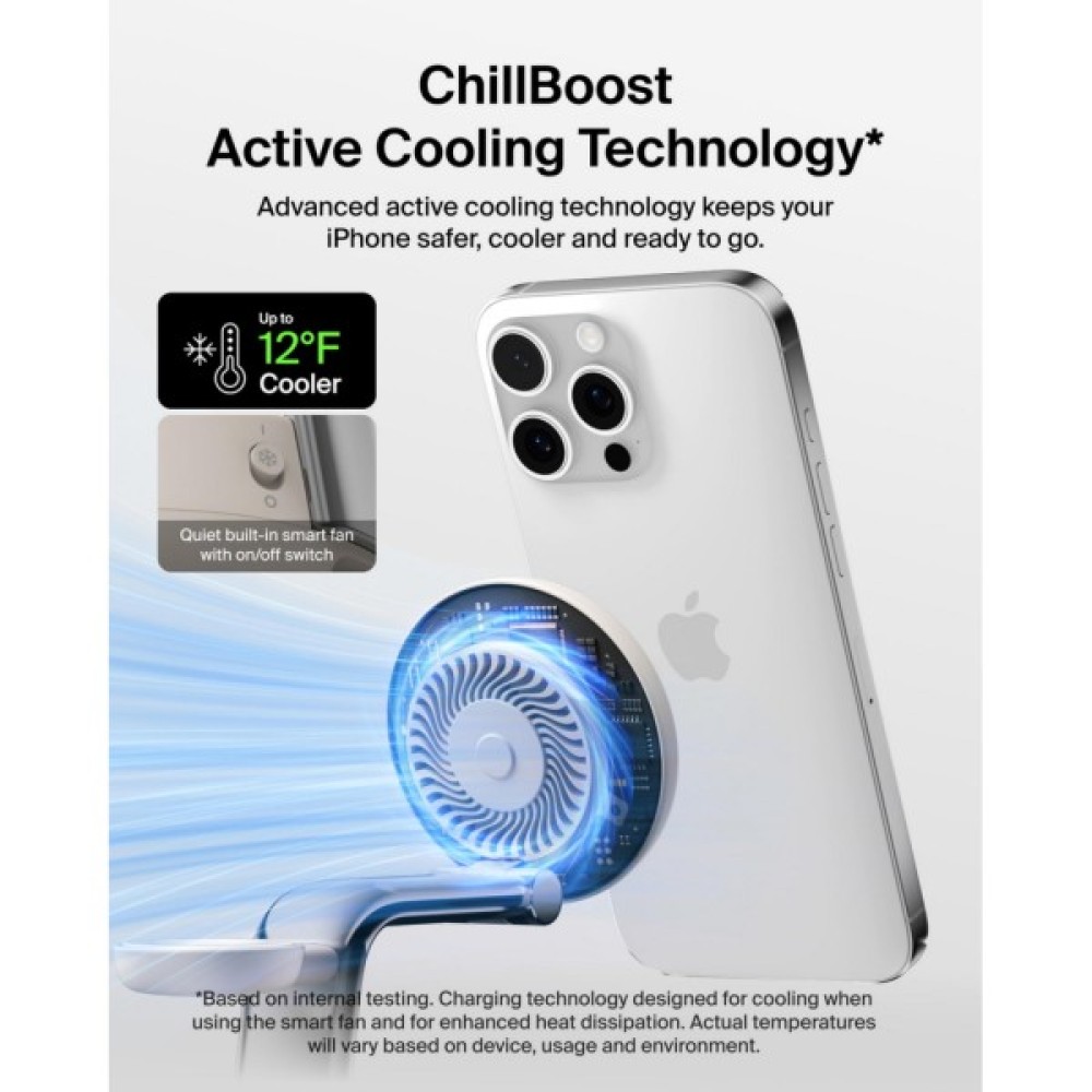 Інноваційна система ChillBoost гарантує підтримку оптимальної температури, завдяки чому бездротове заряджання стає таким же швидким, як і дротове. З максимальною вихідною потужністю у 25 Вт, пристрій заряджає iPhone від 0 до 50% усього за 25 хвилин, а Apple Watch Series 10 на 80% за 30 хвилин.