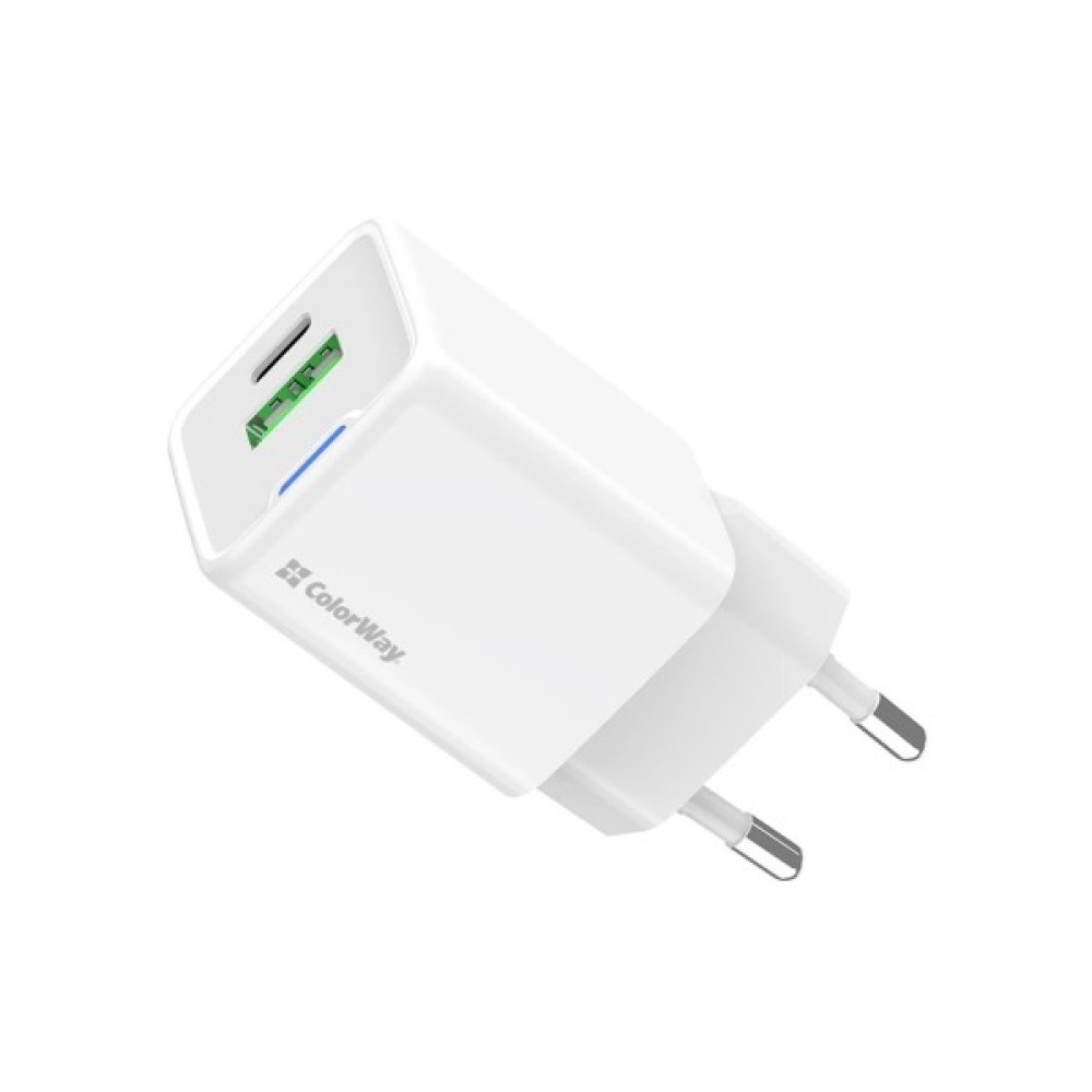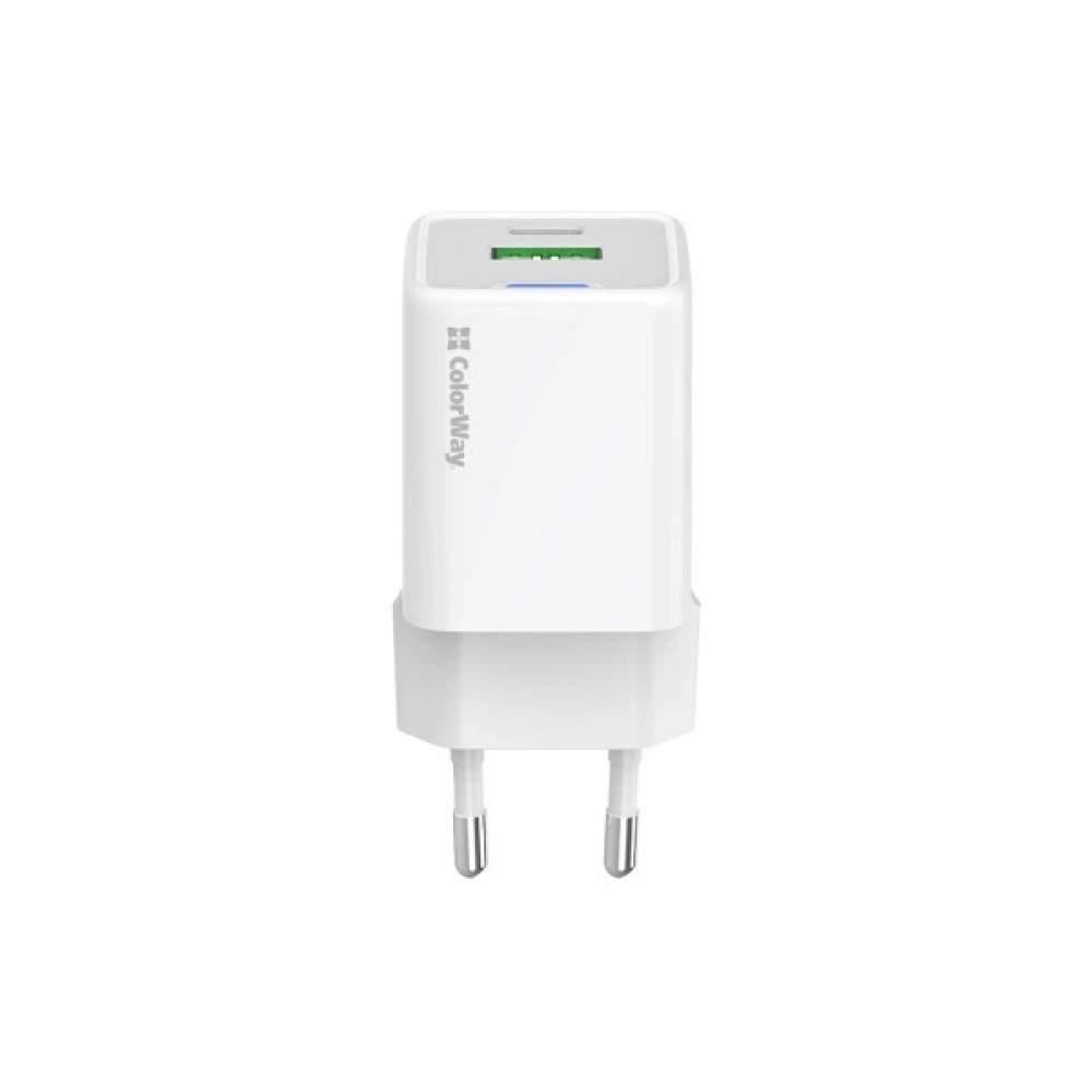 Зарядний пристрій ColorWay USB-C PD20W + 1xUSB QC4.0 white (CW-CHS062PD-WT) — це сучасний адаптер для тих, хто цінує швидкість та надійність. Виконаний у компактному розмірі та елегантному білому кольорі, цей пристрій відзначається високою якістю та зручністю експлуатації.