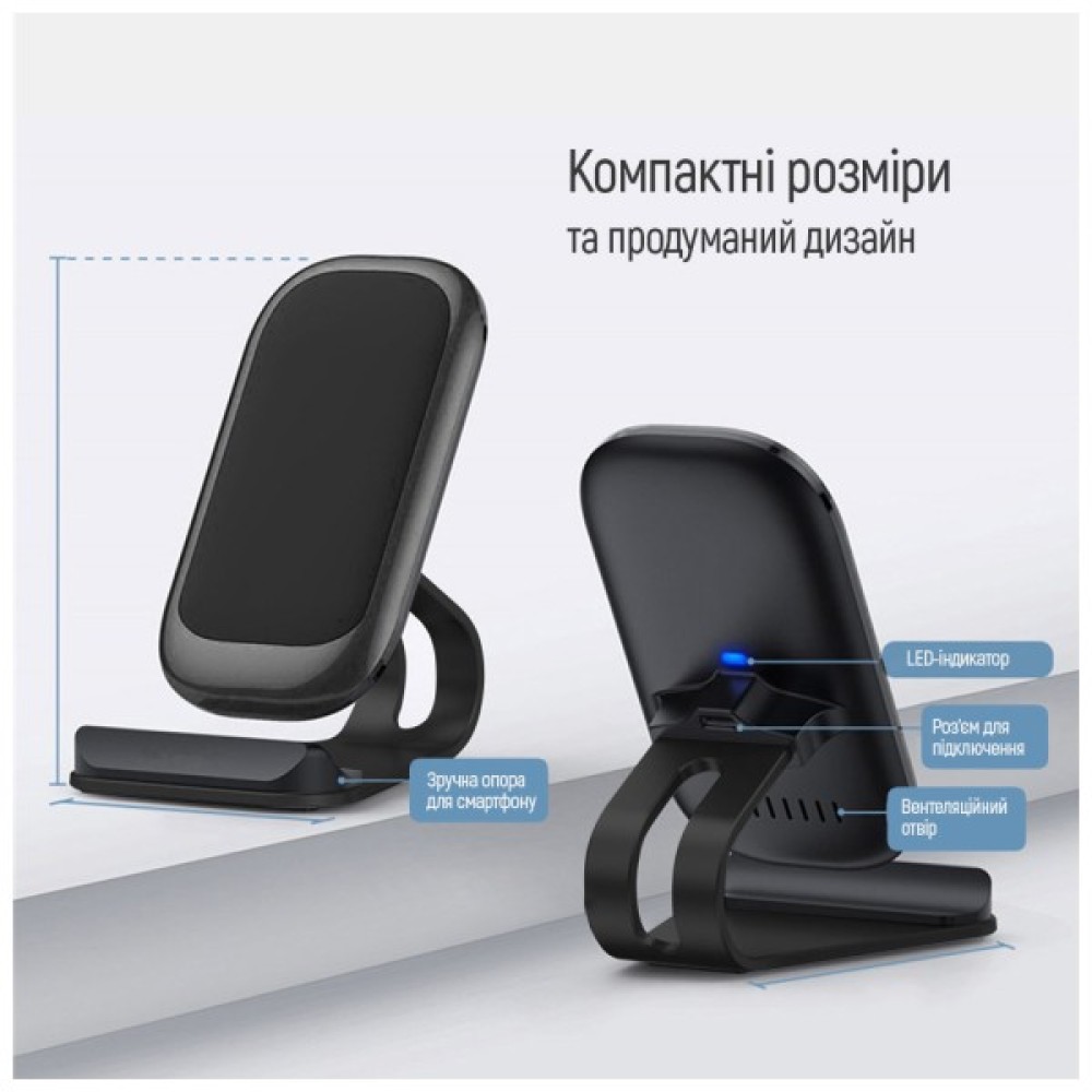 Привабливий корпус з покриттям Soft Touch додає стилю і відрізняє цей пристрій від конкурентів. Нековзний гумовий килимок забезпечує стійкість вашого телефону під час зарядки, незалежно від його розміру.