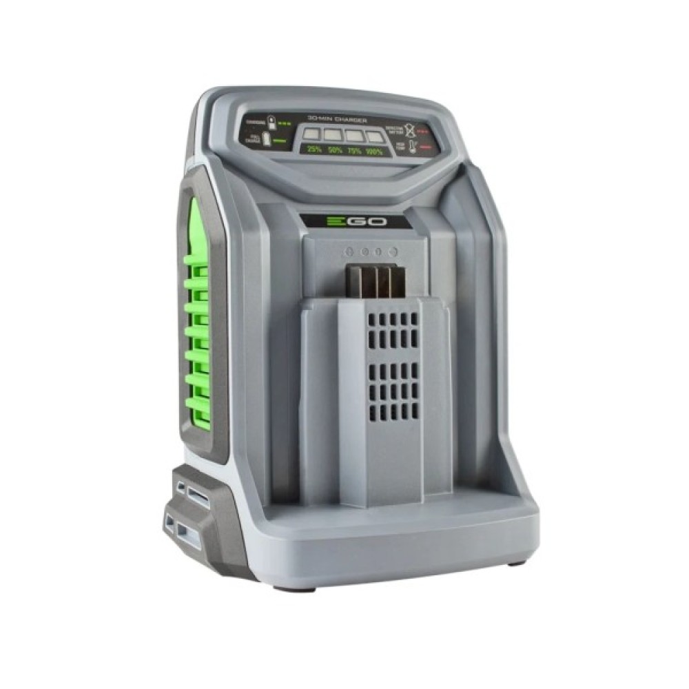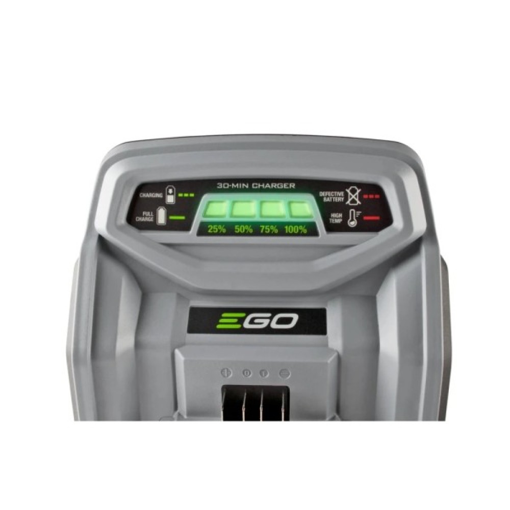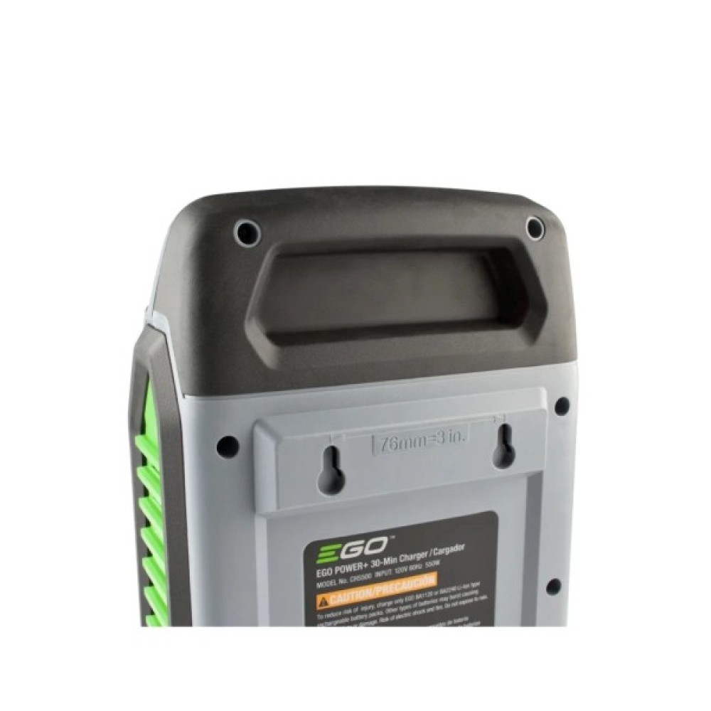 Зарядний пристрій EGO CH5500E застосовується для зарядки акумуляторних батарей садової техніки EGO 56V. Модель вирізняється швидкістю заряджання та унікальною системою охолодження.