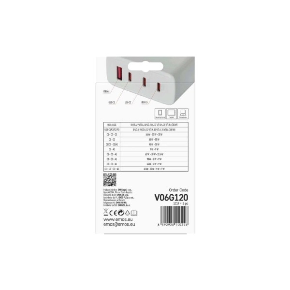 Обираючи EMOS V06G120, ви даруєте собі комфорт, надійність та швидкість у сучасному динамічному світі. Це зарядний пристрій, який відповідатиме всім вашим потребам, забезпечуючи високий рівень продуктивності та безпеку ваших гаджетів у будь-яких умовах.