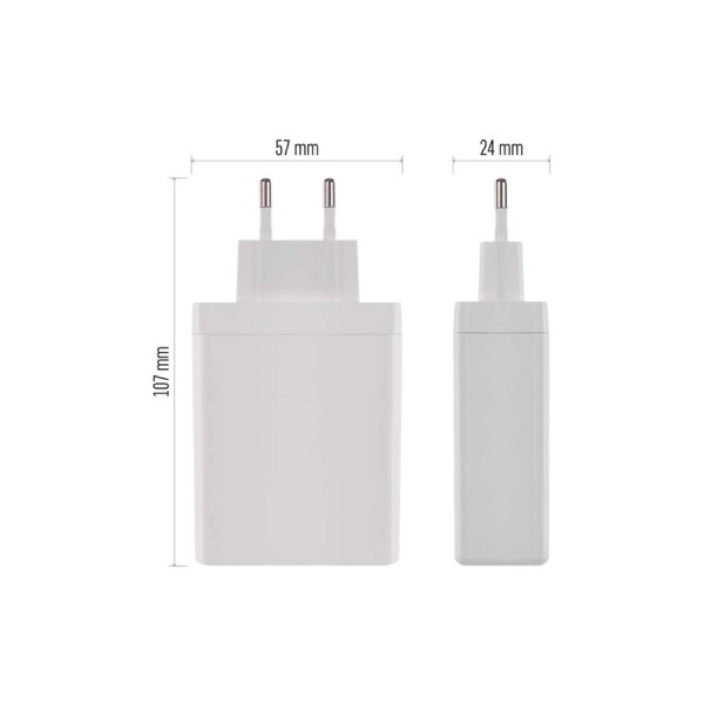 Із чотирма USB портами (три USB Type-C та один USB-A), цей адаптер оснащений для одночасного заряджання кількох пристроїв, зберігаючи високу швидкість та продуктивність. Універсальне призначення зарядного пристрою робить його ідеальним вибором для любителів подорожей, адже він сумісний із більшістю європейських розеток.
