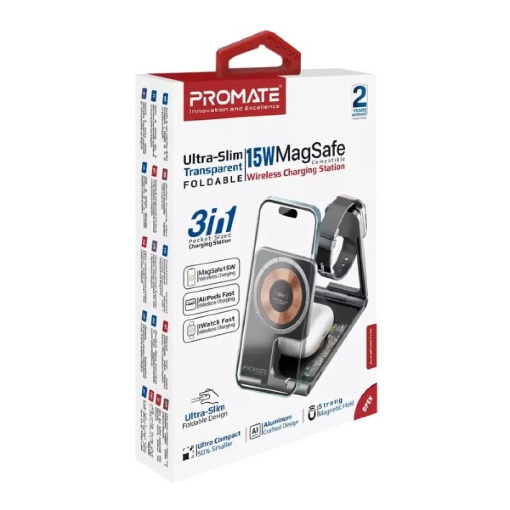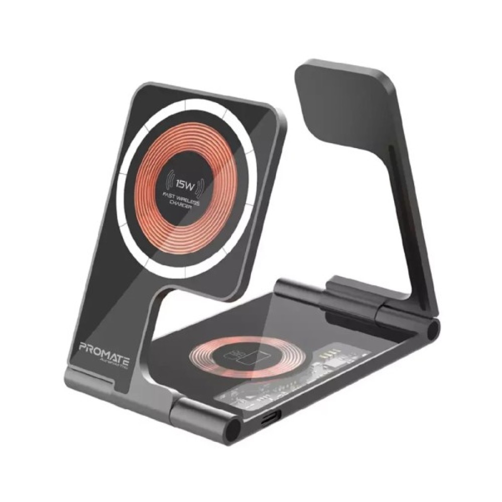 Зарядний пристрій Promate aurafold-trio — це інноваційне рішення для сучасного користувача, що дозволяє легко підтримувати гаджети зарядженими та готовими до роботи. Цей бездротовий зарядний пристрій розрахований на обслуговування смартфонів, TWS навушників і смарт годинників, забезпечуючи максимально зручний досвід користування завдяки бездротовому підключенню Qi.