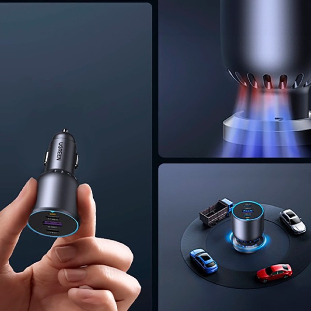 Зарядний пристрій UGREEN 3xUSB 130W (2xUSB-C+USB-A) QC3.0 (EC705) (35025) - це революційний автомобільний адаптер, призначений для тих, хто не готовий на компроміси у виборі між швидкістю, безпекою та надійністю. Завдяки вражаючій вихідній потужності до 130 Вт, цей пристрій є ідеальним рішенням для водіїв, які бажають завжди мати заряджені смартфони, планшети чи навіть ноутбуки під час поїздок.