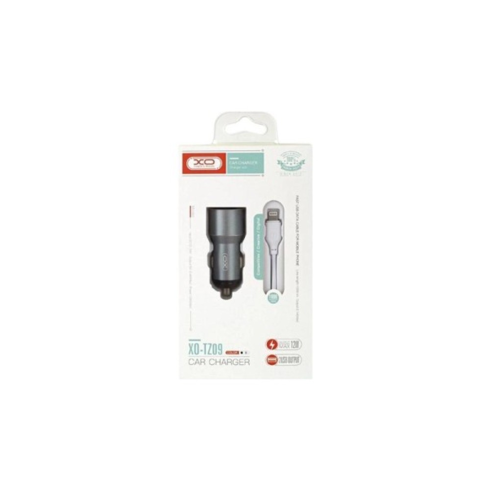 Зарядний пристрій XO TZ09 2.4A/2 USB + cable lightning Grey (XO-TZ09L-GR)