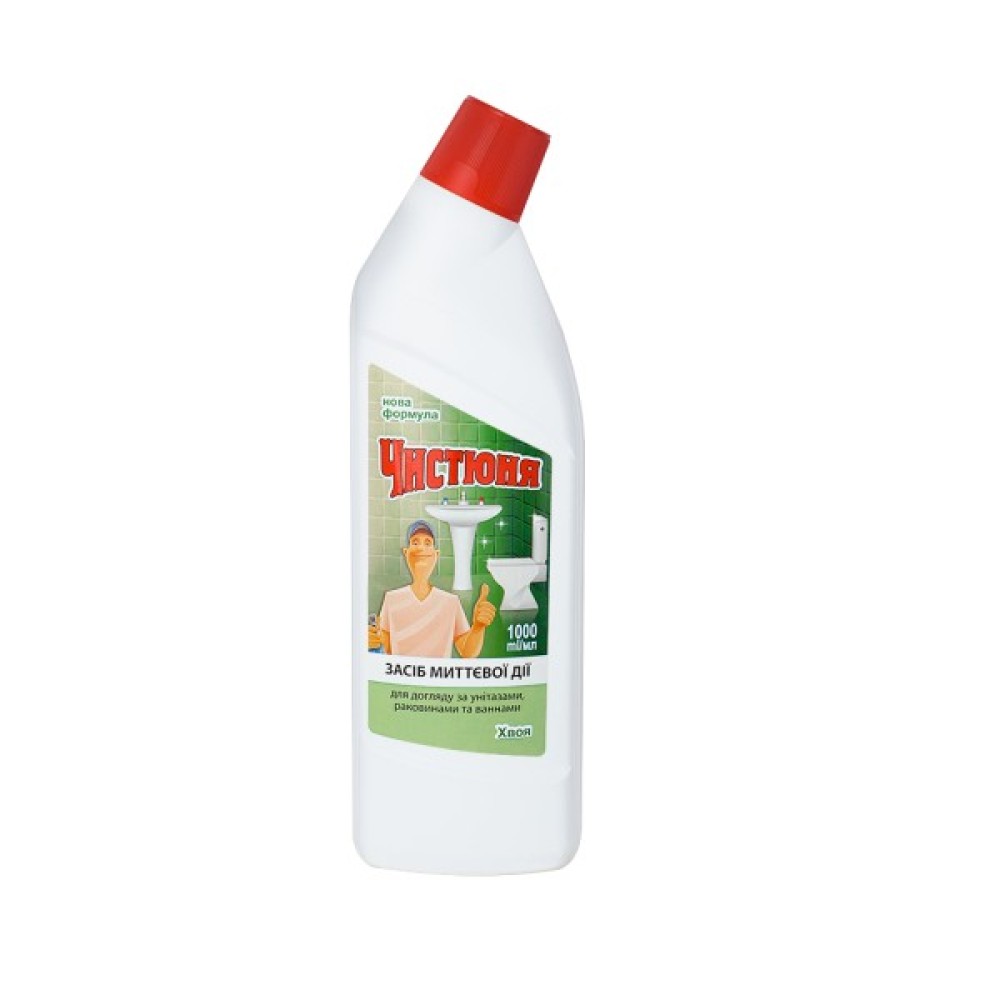 «Чистюня» миттєво видаляє вапняний наліт, іржу, ефективно чистить ванни, мийки, унітази та кахельні поверхні. Засіб містить кислоту!