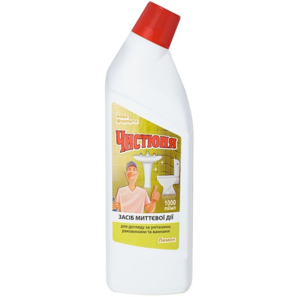 Засіб для догляду за унітазами Чистюня Морська свіжість миттєво видаляє вапняний наліт, іржу, ефективно чистить ванни, раковини, унітази та кахельні поверхні.