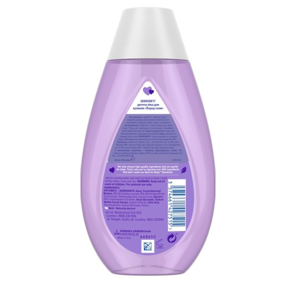 Піна для купання від Johnson's Baby з приємним ароматом NaturalCalm безпечна для очей. Вашій дитині обов'язково сподобається насолоджуватися безліччю ніжних пухирців, а вам більше не доведеться турбуватися за стан дитячої шкіри.