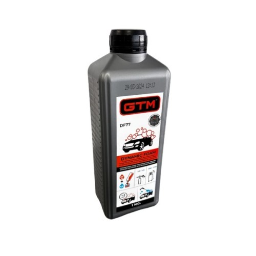 GTM Dynamic Foam DF77 - високоефективний засіб для очищення поверхні від забруднень усіх видів. Відноситься до преміального сегменту активної піни і виділяється підвищеною миючою здатністю через збільшену концентрацію хімічно активних речовин. Застосовується для всіх видів безконтактного миття автомобілів, велосипедів та мотоциклів. Надає поверхні блиску без розлучень. Піна безпечна для лакофарбового покриття, пластмас, гуми та металів.