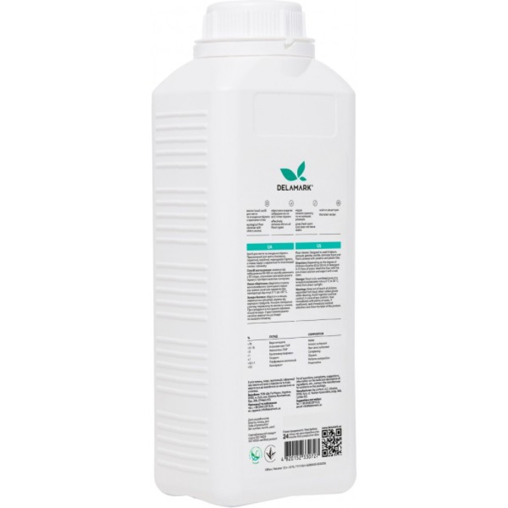 Концентрований засіб для миття й очищення підлоги з ароматом м'яти De La Mark — спеціально розроблений для простого й безпечного вологого прибирання підлог з усіх типів матеріалів: лінолеуму, ламінату, паркету, керамічної та гранітної плитки. Має безпечний склад, легко змивається. Добре видаляє бруд і не залишає розводів. Розроблений технологами міжнародного рівня, щоб підлоги з будь-якого матеріалу блищали чистотою за мінімальних зусиль і без шкоди для людей і довкілля