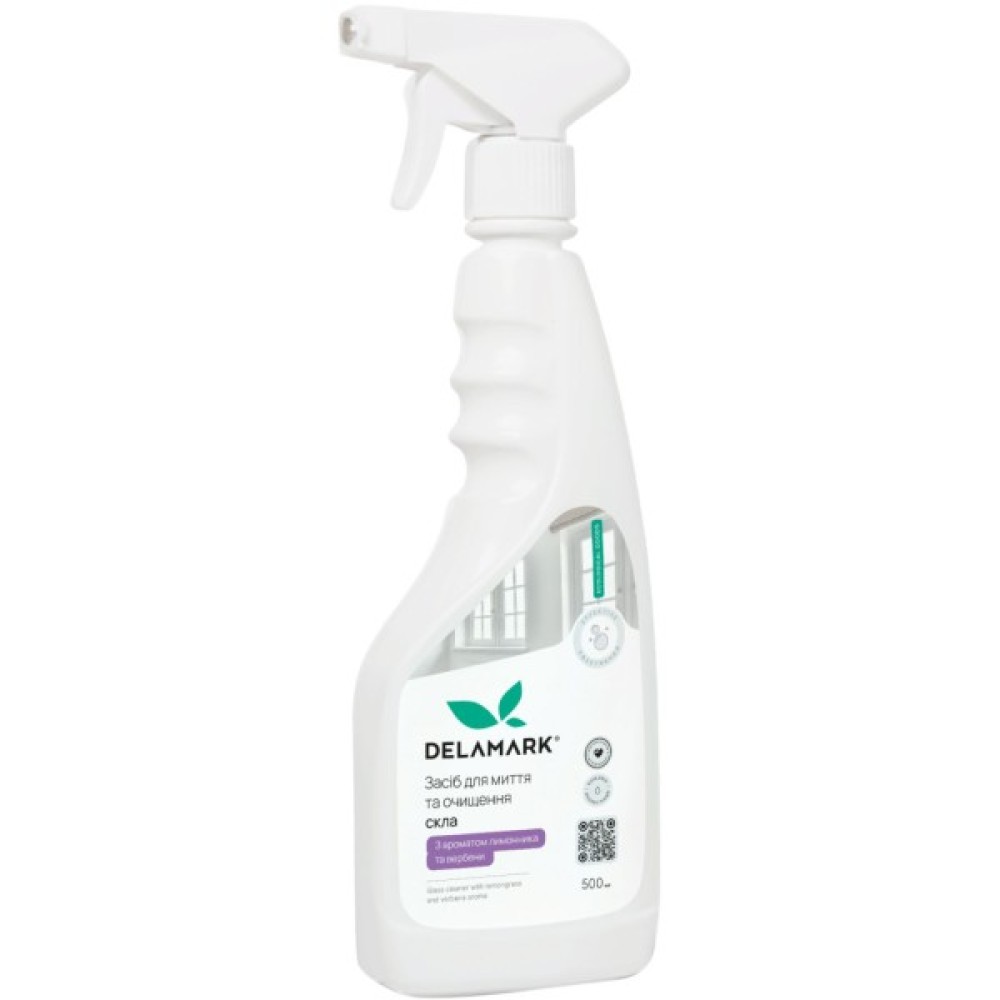 Концентрований засіб для миття та очищення скла DeLaMark із освіжаючим ароматом лимонника та вербени дуже економний та має зручну упаковку з розпилювачем.