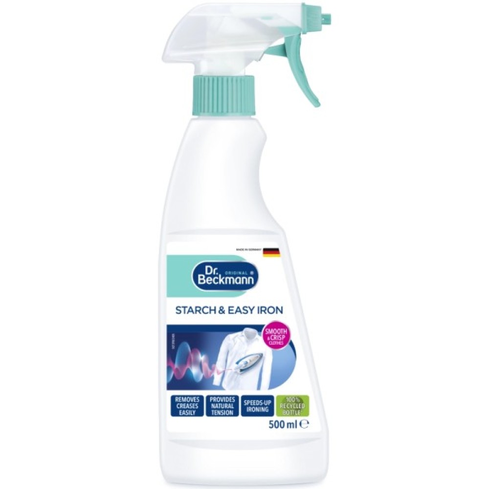 Інноваційна формула одночасно накрохмалює тканину та гарантує легке розгладження навіть сильно пом'ятої тканини.
