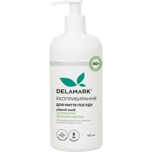 Засіб для ручного миття посуду DeLaMark Зелене яблуко з іонами срібла пропонує поєднання ефективності та безпеки. Екологічна формула без фосфатів та хімічних добавок легко справляється з жирними плямами навіть в холодній воді. Іони срібла забезпечують додатковий захист, маючи зазоєвальний вплив на шкіру. Засіб гіпоалергенний і безпечний для дитячого посуду. Його концентрована формула дозволяє економно використовувати продукт. А ніжний цитрусовий аромат подарує відчуття свіжості без залишкового запаху після миття. Вироблено в Україні з дотриманням високих стандартів якості.