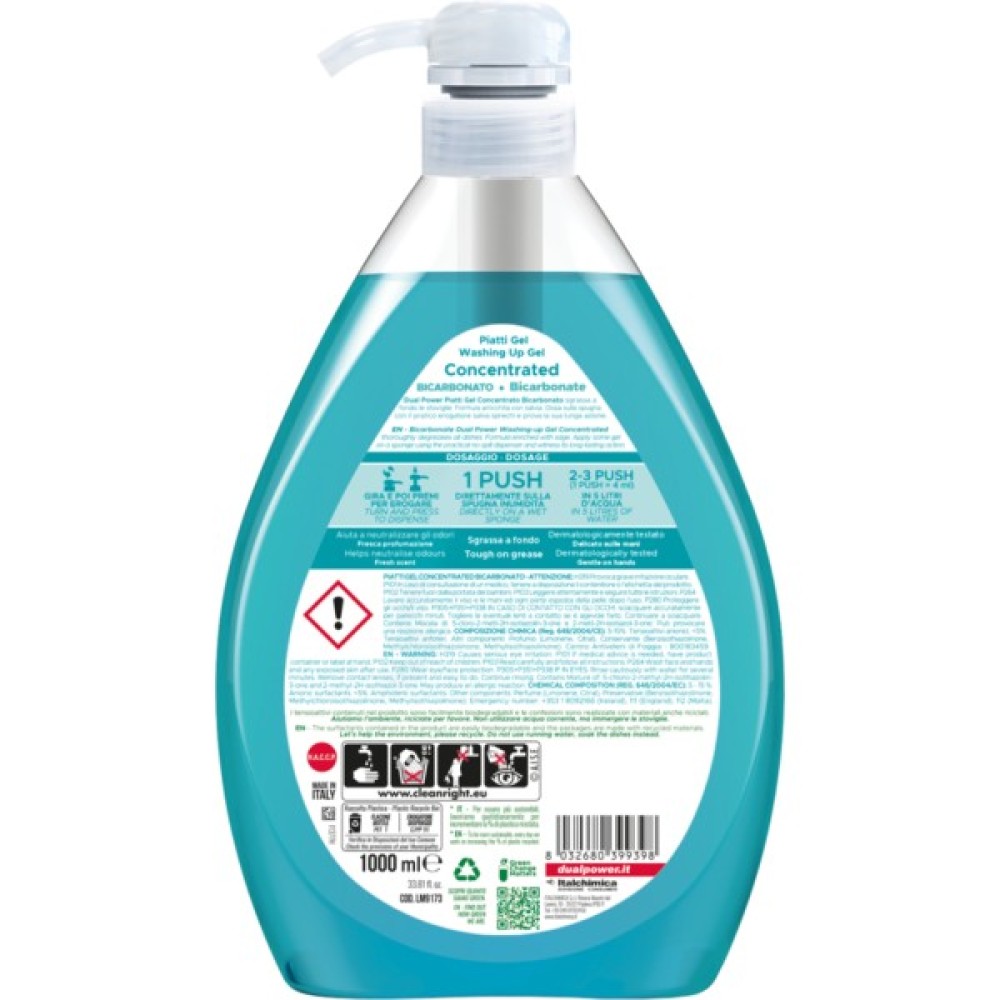 Засіб для ручного миття посуду Dual Power з ароматом сода та шавлія — ваш незамінний помічник на кухні. Це універсальний очищувач з антибактеріальним ефектом, що зробить ваш посуд бездоганно чистим, зберігаючи його природний блиск. Концентрована формула в формі гелю забезпечує економне використання: лише декілька капель достатньо для потужного очищення.