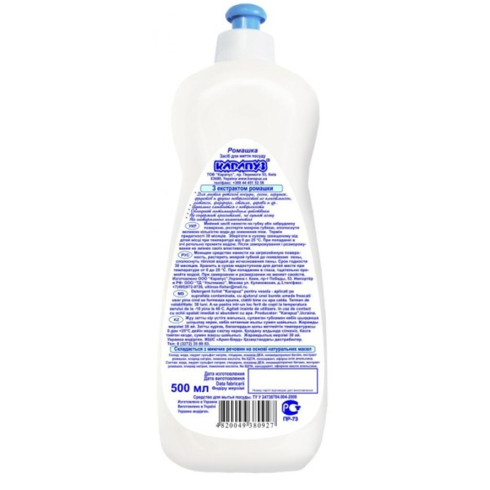 Засіб, ручного, миття, посуду, Карапуз, Ромашка, 500, мл, 4820049380927